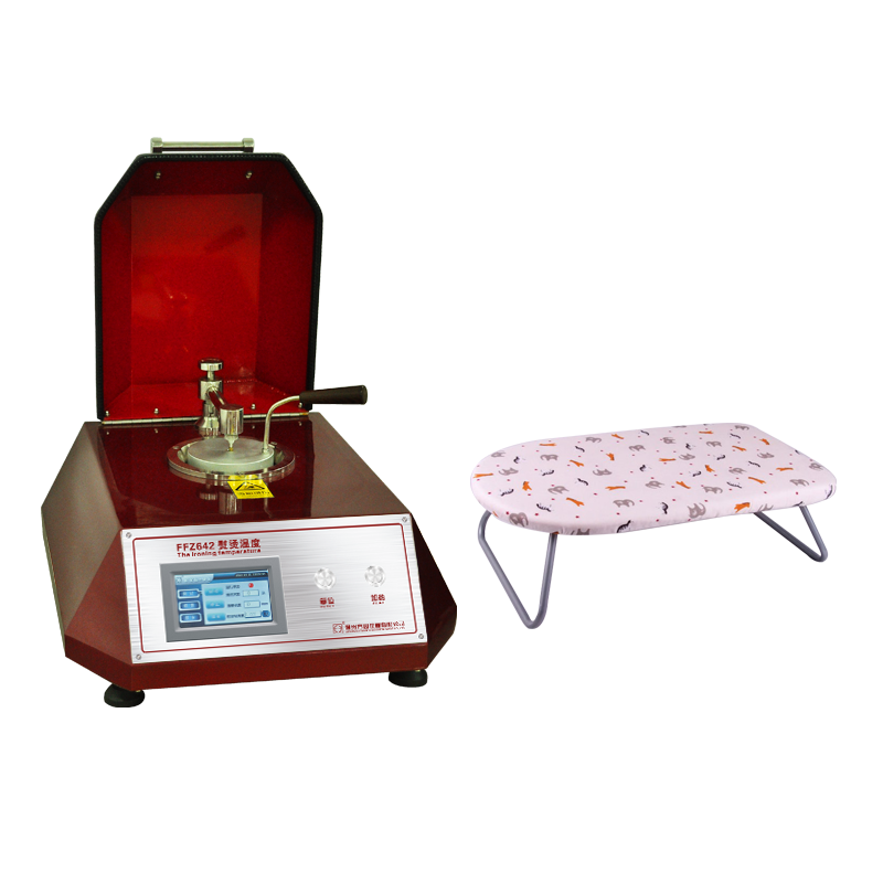 FFZ642熨燙溫度測試儀是考核隔熱手套性能的常用儀器。選用熨燙溫度測試儀對隔熱手套與高溫部件接觸面進行測試,標準BS6526與BS7305規定了一種隔熱手套熨燙溫度的試驗方法。主要適用于家用隔熱手套。測試方法是在標準大氣下,將鋁塊加熱到測試溫度,移到樣品上放置30s,然后評定樣品的顏色變化、光澤、硬挺度或者其它手感和目測變化。對于顏色稍有變化的樣品可平衡調濕24h后再評級。