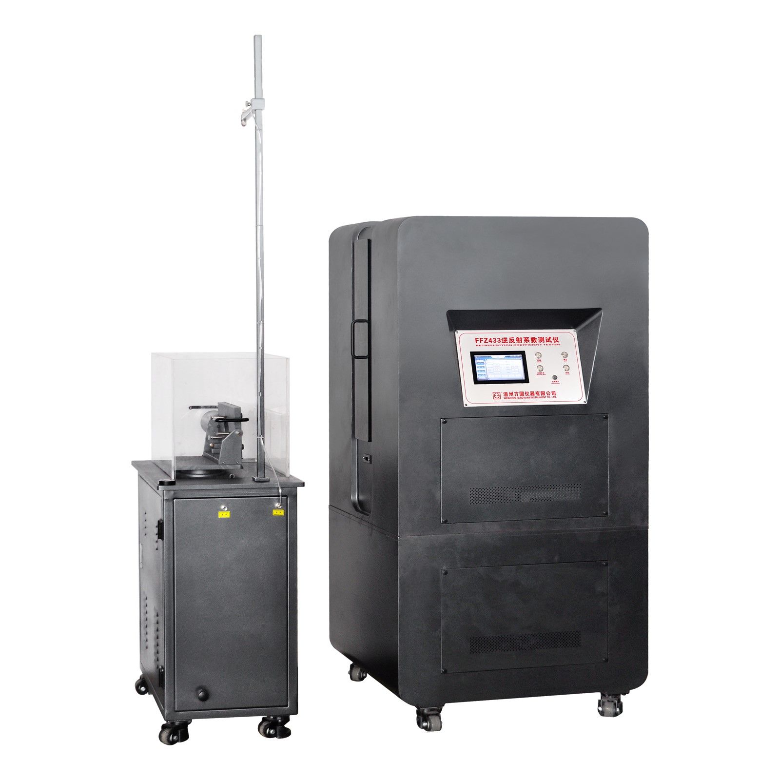 本公司自主研發FFZ433逆反射系數測試儀用于職業用高可視性警示材料、中小學生交通安全反光校服等材料在干狀態和淋雨濕狀態下反光性能的評定。