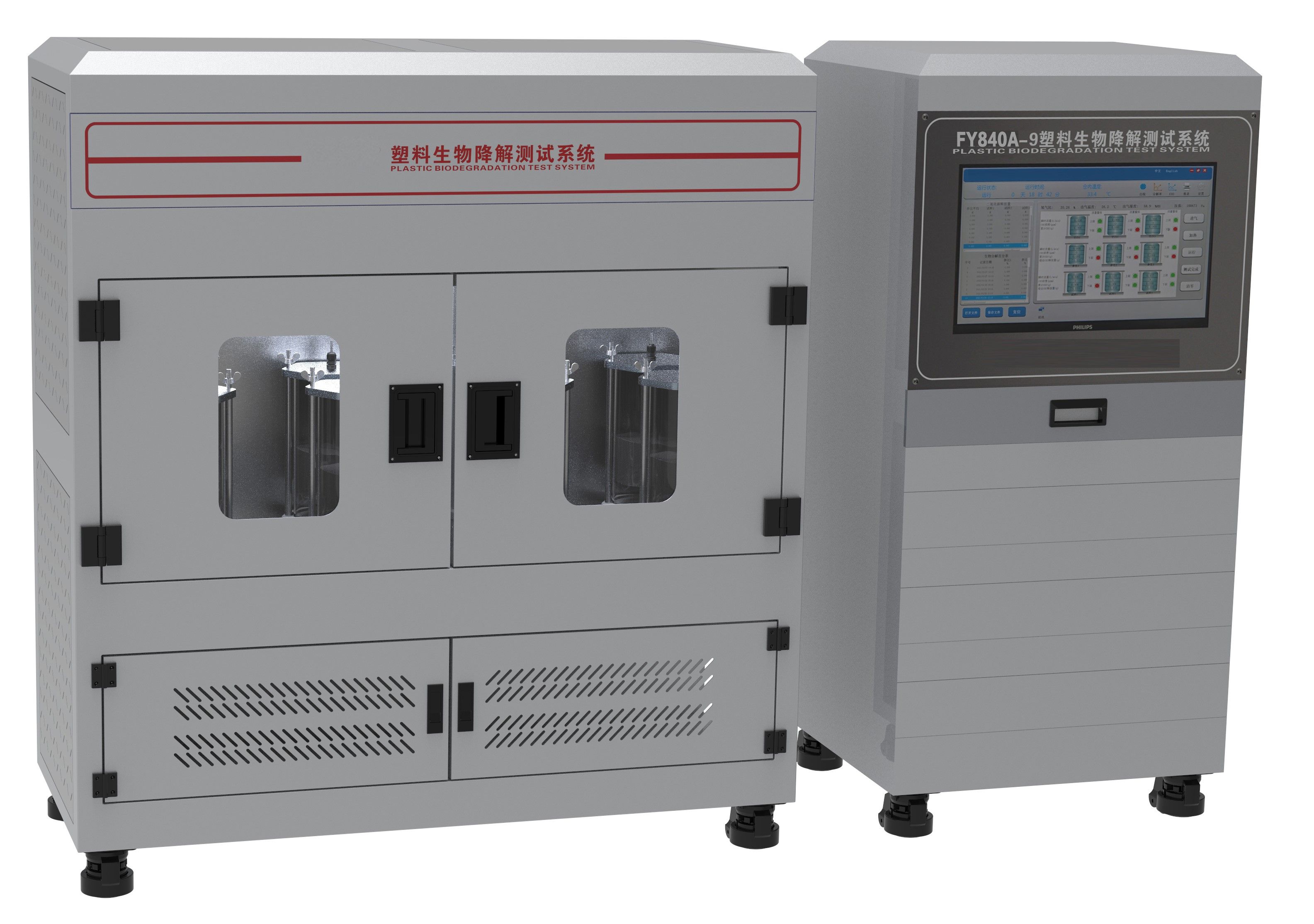 在試驗材料的需氧生物分解過程中,二氧化碳、水、礦化無機鹽及新的生物質都是最終生物分解的產物。在試驗中連續監測、定期測量試驗容器和空白容器產生的二氧化碳,累計產生的二氧化碳量。試驗材料在試驗中實際產生的二氧化碳量與該材料可以產生的二氧化碳的理論值之比為生物分解百分率。